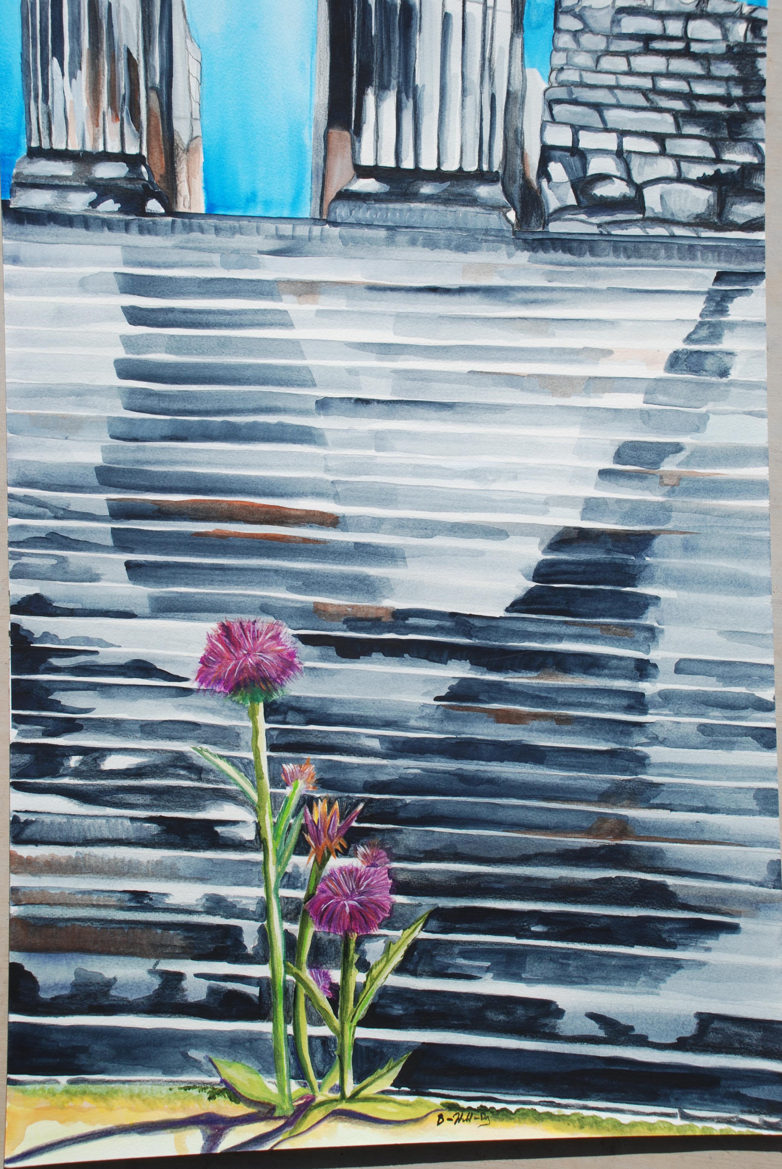 Thistles by a Greek Temple This water color is of the steps and facade of an ancient Greek Temple. Share this: Share on Facebook (Opens in new window) Facebook Share on X (Opens in new window) X Like Loading... Related March 4, 2010March 4, 2010 by hilldowdy1 Leave a comment