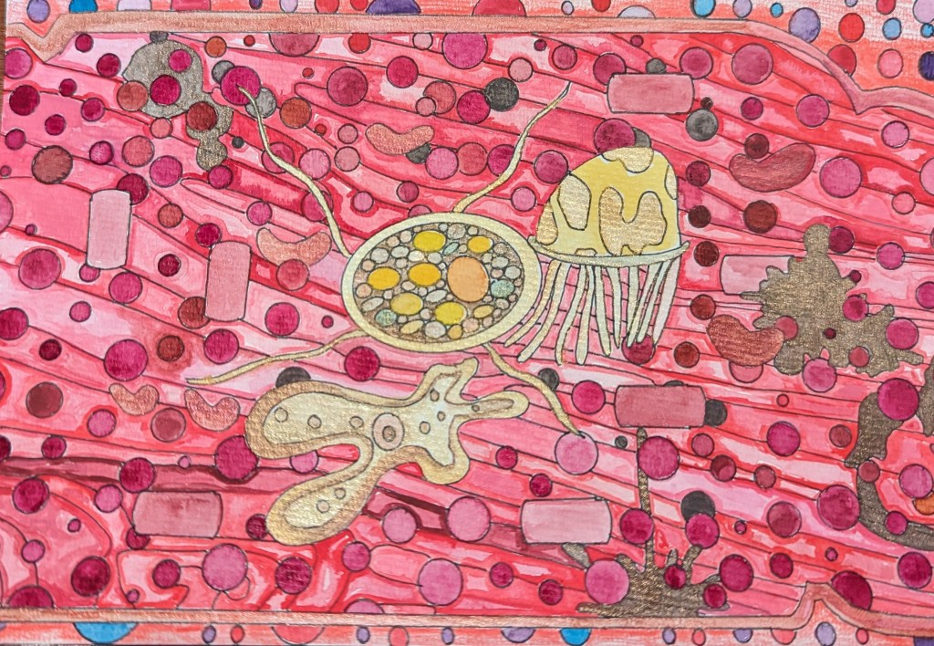 Watercolor, pencils and pens
