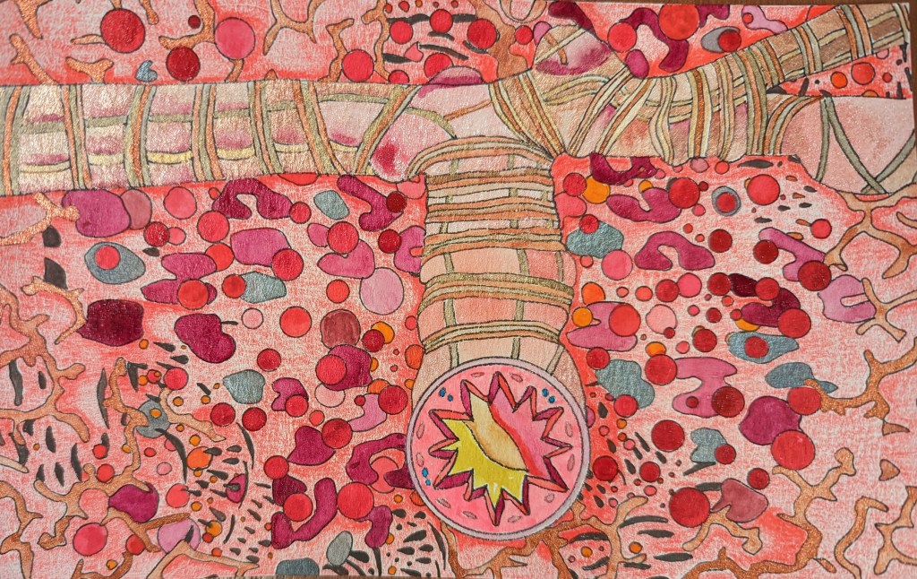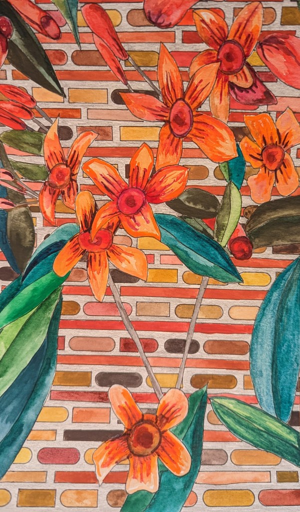 Watercolors,pens and pencils