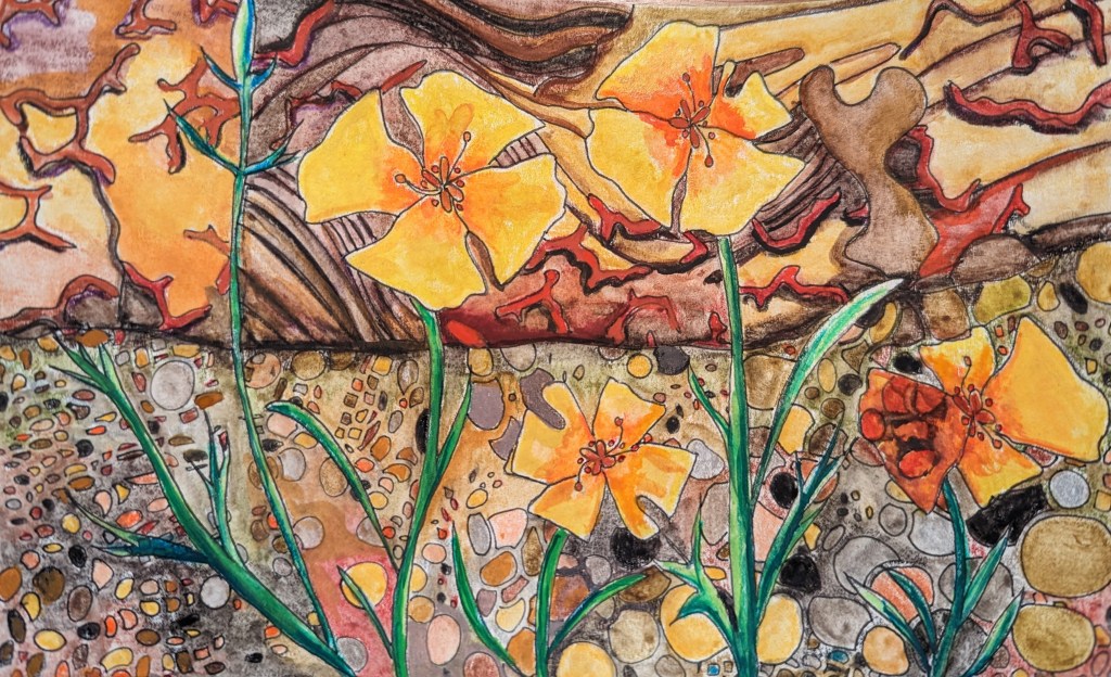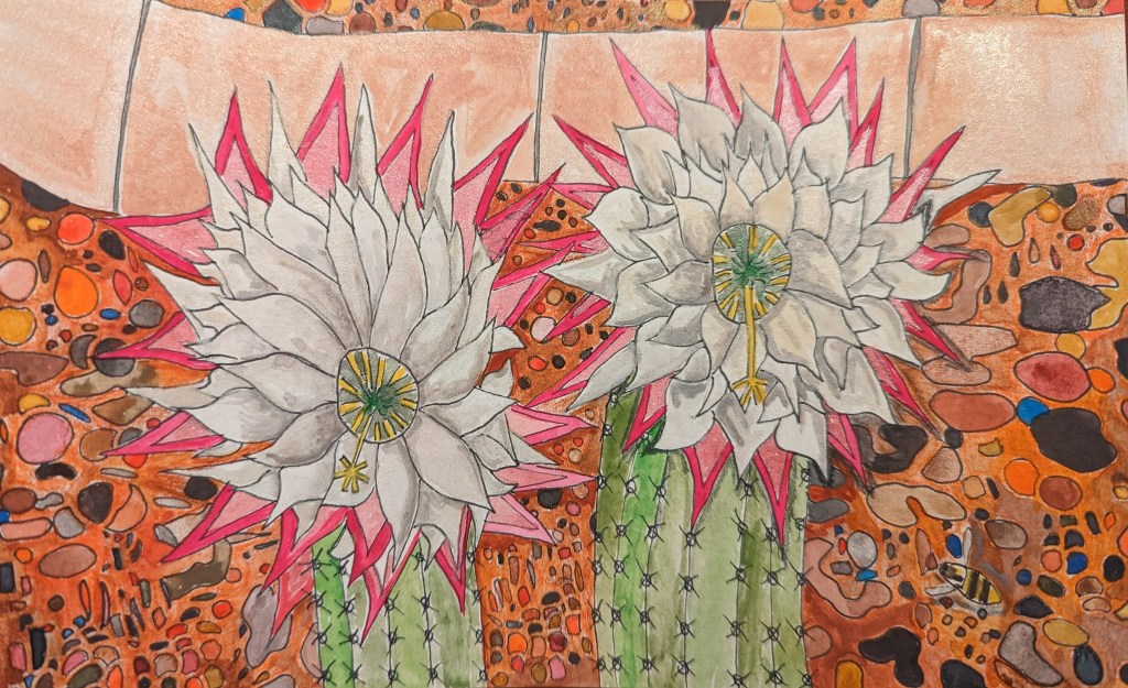 Watercolors, pencils and pens