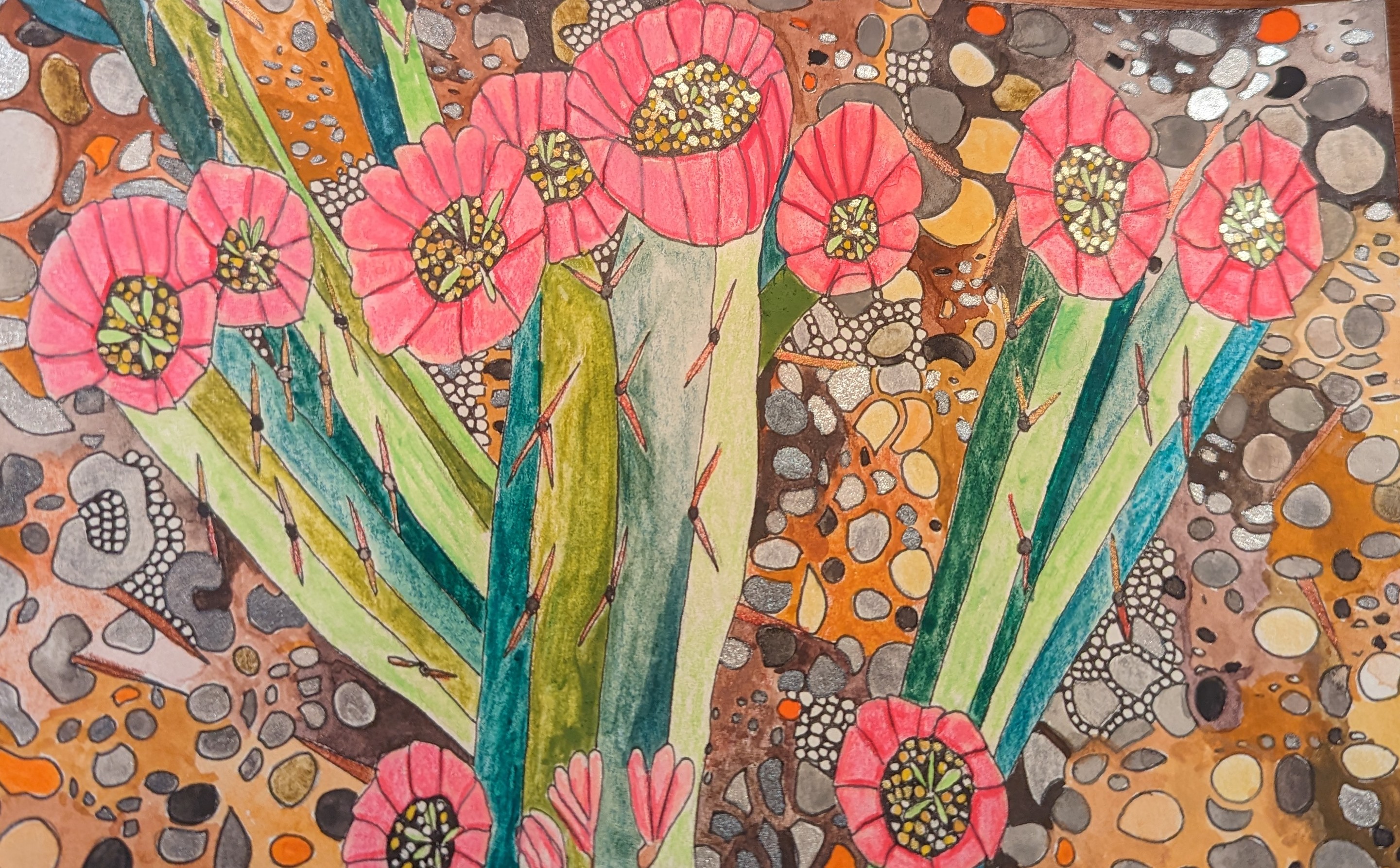 Watercolors,pens and pencils